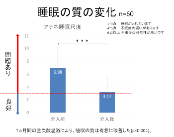 成人男女健常人で、1ヵ月の重炭酸温浴により睡眠の質が改善した例
