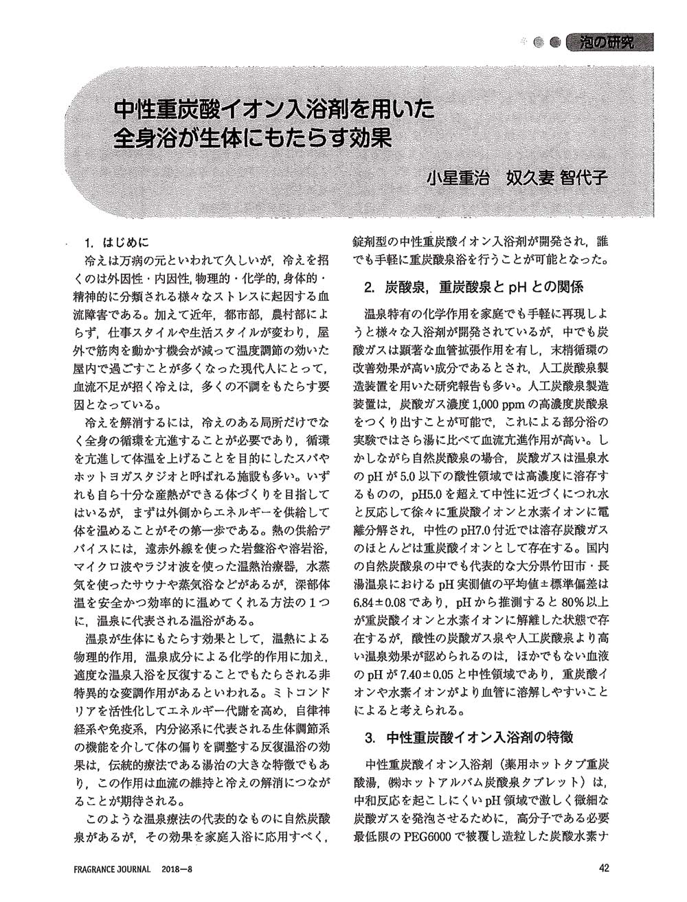 - 重炭酸イオン入浴剤の効果とその製剤技術の開発