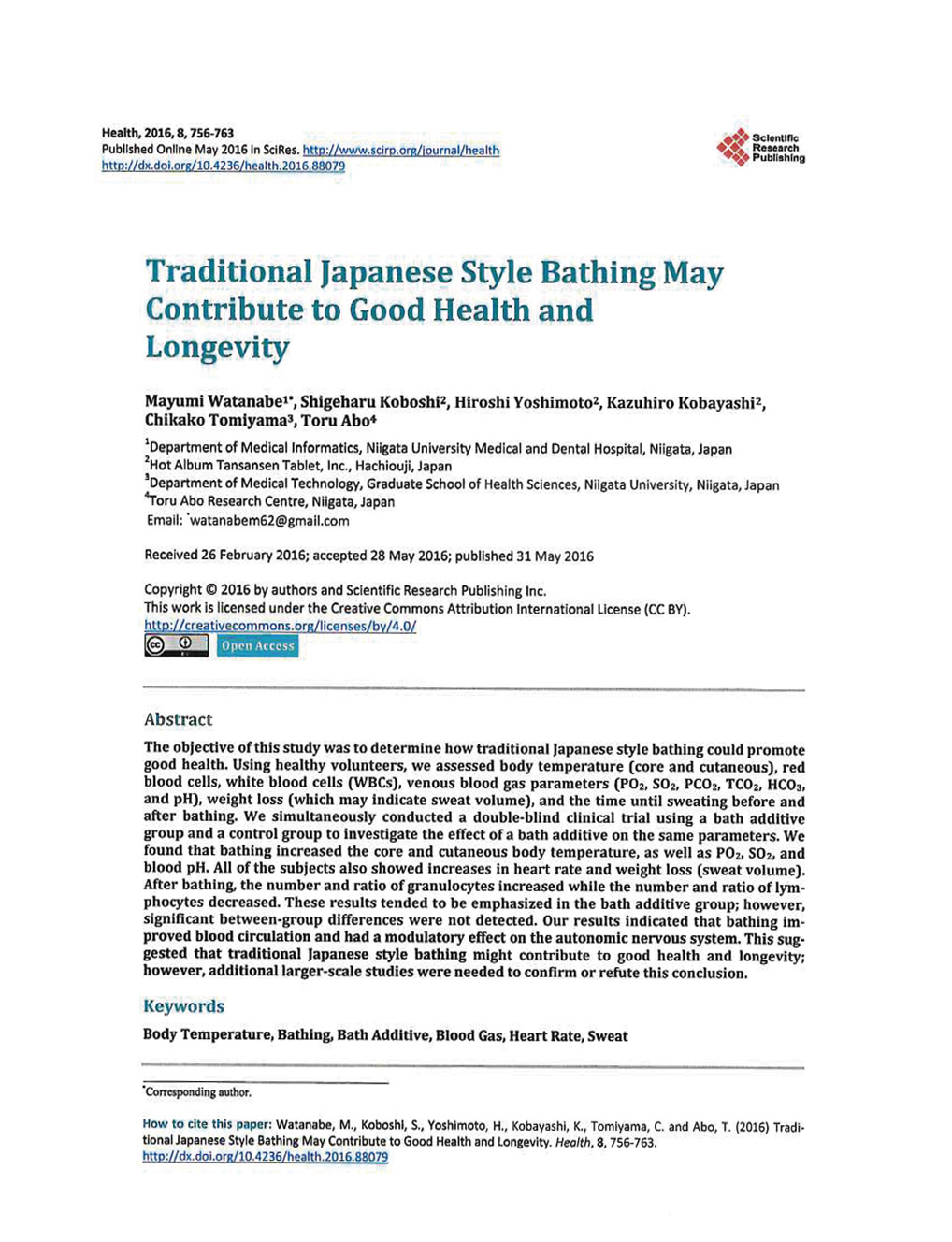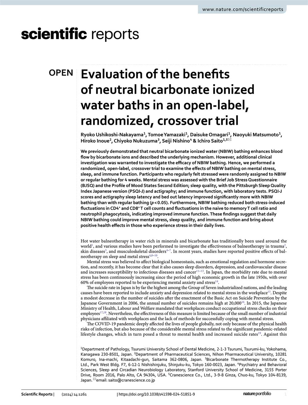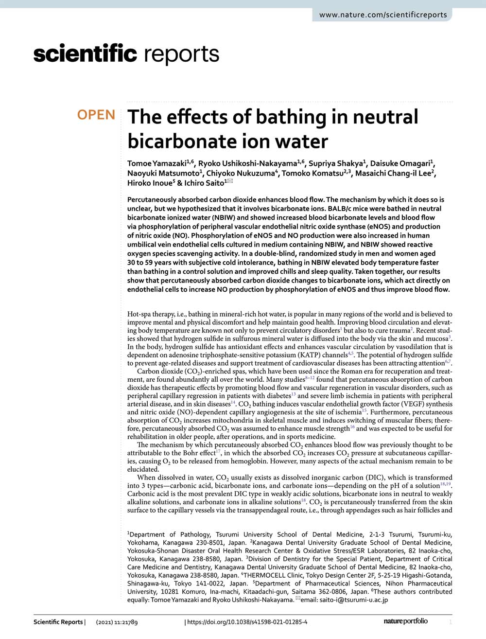 - The efects of bathing in neutral biocarbonate ion water in Scientific report
